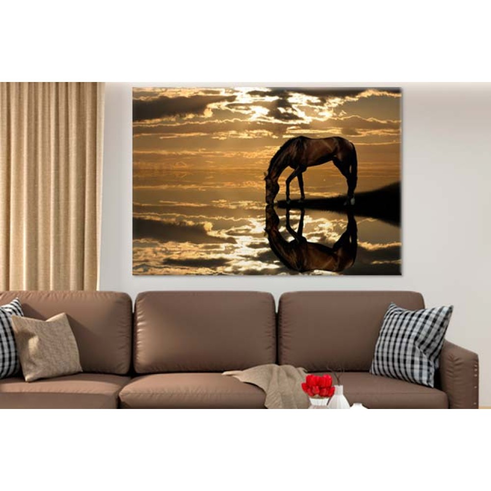 Tema: apa, lac, peisaj, munte, cai, decor interior.